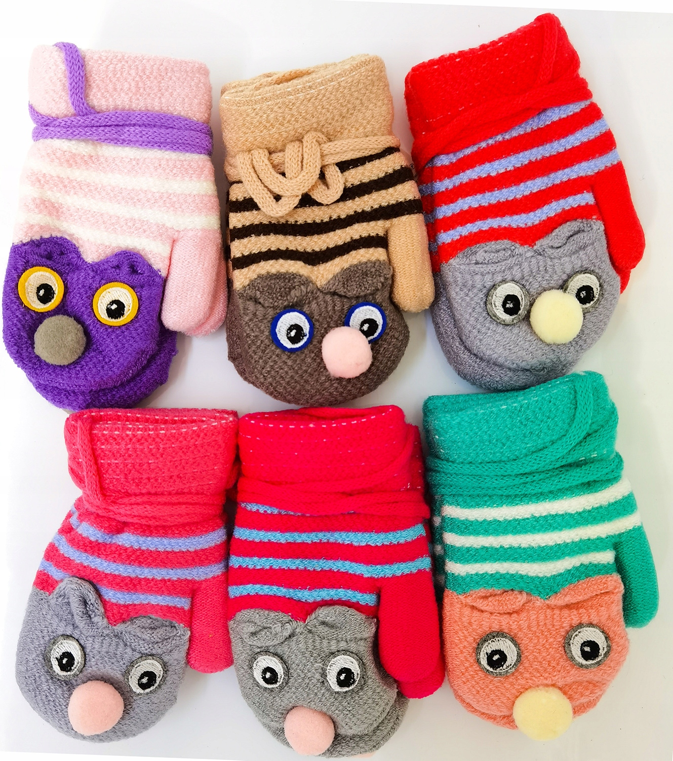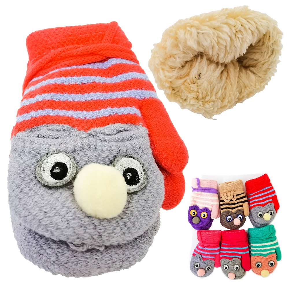 - cechy charakterystyczne: ciepłe futerko od wewnątrz, wesoły wzorek, sznurek łączący rękawiczki tak aby się nie zgubiły