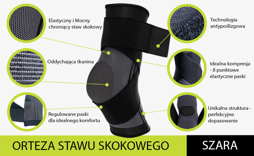 Opaska stabilizująca na staw skokowy z paskami na rzep - wspomaga powrót po kontuzji, poprawia wyniki sportowe.